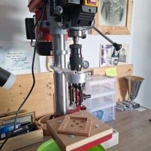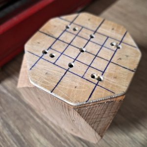 Octobre 2023, les premiers jeux de O’Déboulé ont vu leurs dés percés point par point, trou par trou. Une seule mèche montée sur le mandrin de la perceuse colonne pour