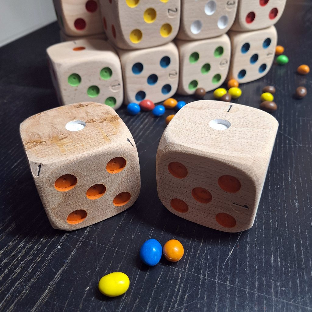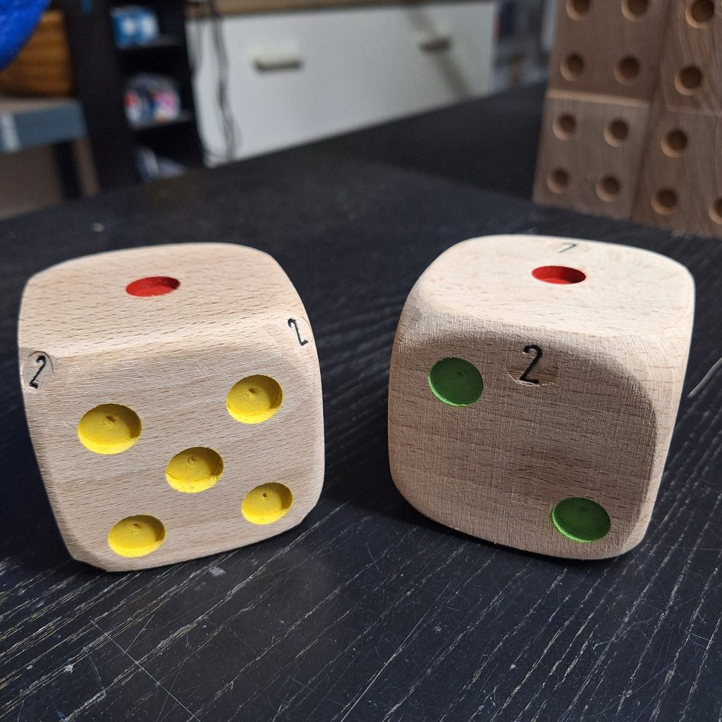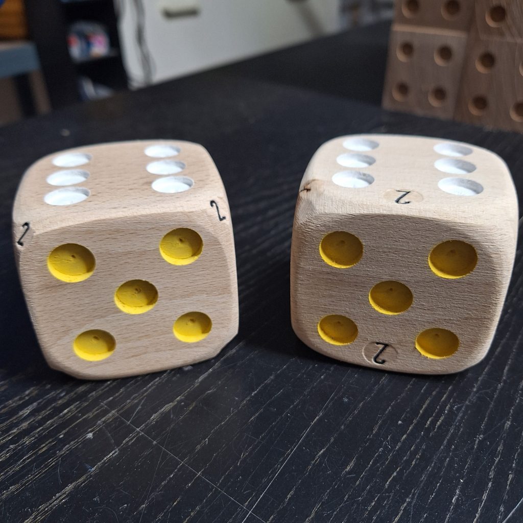 - Les coins du dé étant vierges de toute inscription, leur ponçage peut être plus soutenu ce qui donne, au final, un dé plus « roulant ».